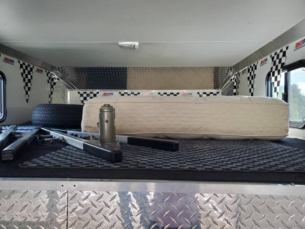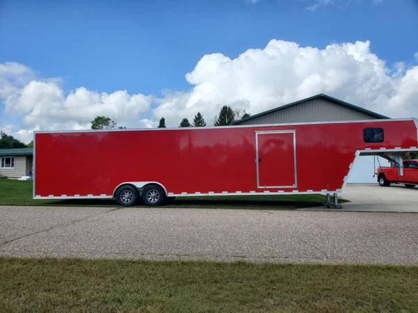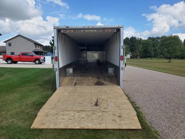 8w 7h 42 L 36ft bed space 2 6000 lb axles 3 dome lights 9 D rings in floor has in floor tracking for 6 sleds and tie downs spare tire less then 5000 miles on it and has always been sheded