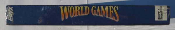 New old stock brand new unopened shrink wrapped box of World Games from EPYX for IBM PC and compatible computer systems.