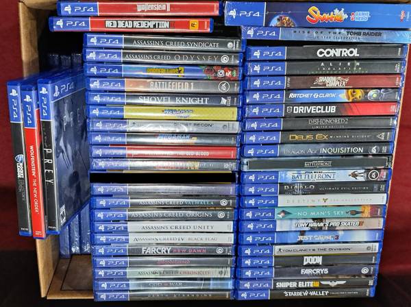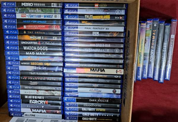 Selling a massive PS4 collection: 100 games, including 43 sealed titles. Also includes a working launch console that has been wiped. Selling this as a lot only, not interested in splitting this up. $1,500, cash only. Email to coordinate pickup, which we can do at Coon Rapids City Hall.