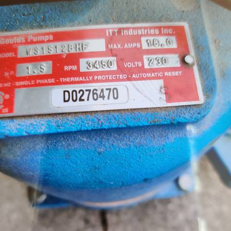 Goulds Pump WS 1512 BHF New old stock New ones are $ 1922.00 plus tax Have two pumps No texting line land #