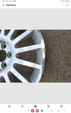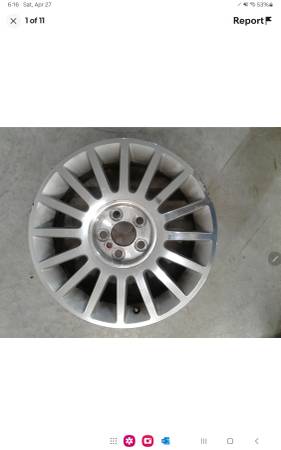 17" Wheel Rim for a 2005 Ford Thunderbird. Has some scratches on edge of rim. Excellent for a spare tire WITH a real wheel rim! . No offers. Cash only. Thank you.