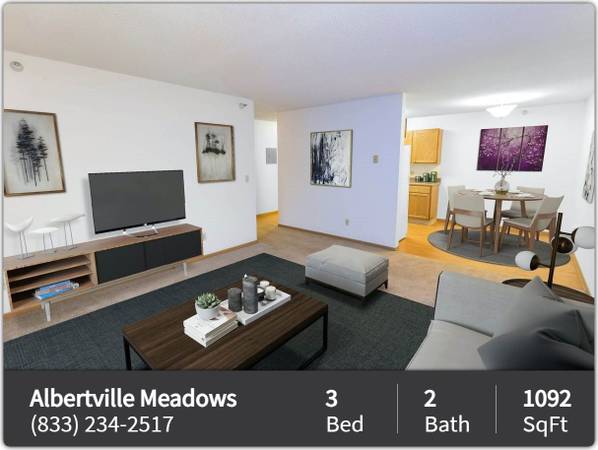 Albertville Meadows offers 1, 2 & 3 bedroom apartment homes. They feature spacious floor plans with large bedrooms and a private balcony or patio. Located just minutes from the highly sought after Albertville Outlet Mall, Albertville Meadows Apartments & Townhomes offers small town living with the hustle of the city.