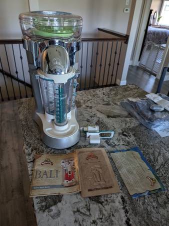 This drink mixing device has only been used once and is in like-new condition. It was worth around $200 when originally purchased. It comes with multiple documents including a manual, as well as a power cord and a serving accessory attachment (all pictured).