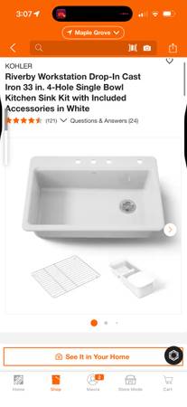 Kohler Riverby 33” Workstation Kitchen Sink – Never been used still in box just sat in our garage.