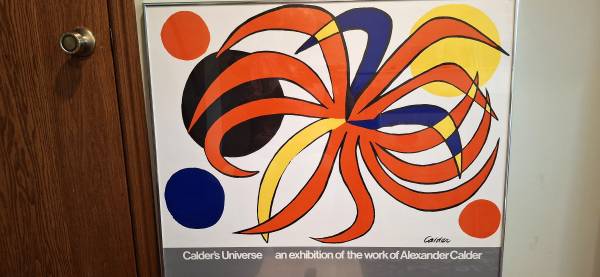 Perfect Calder's Universe poster, stored indoors at an estate since purchased. (Compare at $1200) Also: Andrew Wyeth, framed young man lovely print priced at $150