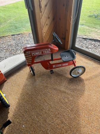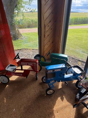 For sale 3 antique pedal tractors, Ford 8730, Power Trac 502,John Deere No 520. All original $250 each. Call Steve