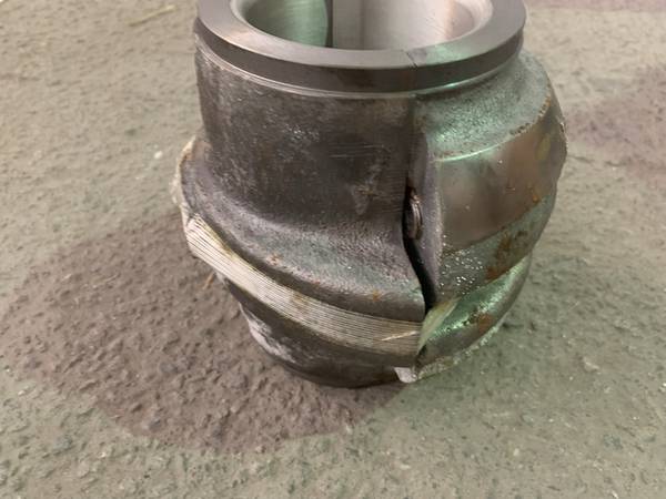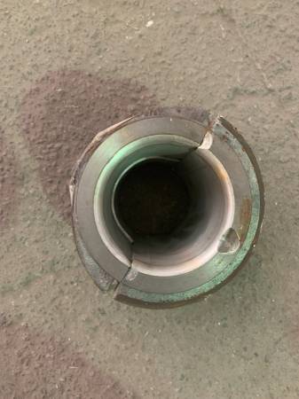 This appears to be a split bearing liner used in Dodge outboard fan assemblies, likely as part of a bearing housing setup in large industrial fans or motors. The liner reduces wear between the bearing and housing and is crucial for maintaining proper shaft alignment.