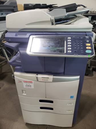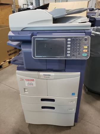 The Toshiba 357 Multifunction Copier is the next step up after the Toshiba 356. It is a monochrome mfp that will print at speeds of up to 35 PPM. The eStudio 357 will hold letter and legal sized paper and has a maximum sheet capacity of 3,200 sheets. The e-Studio 357 is a secure, eco-friendly MFP that will copy, print, scan and fax.