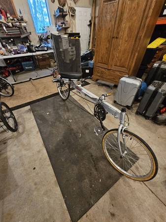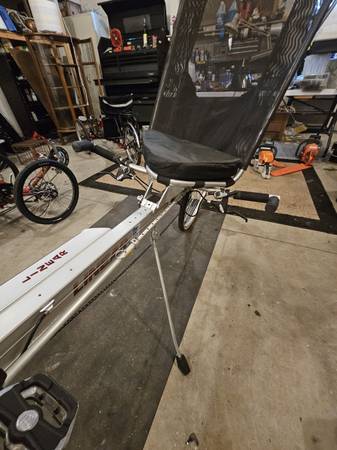 Linear all aluminum recumbent bike. Fully adjustable for different leg length. Great shape, Cash only