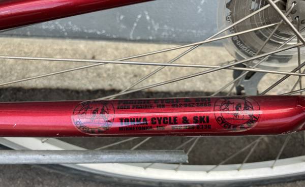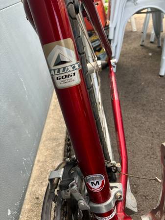 This bike says on the frame it is a 17" men's bike but, it was owned by a little old lady who rode it very little. 21 speeds, shifting works like new. Braking works. Spring loaded seat post. This bike is probably 5-10 years old. One tiny front tire issue from sitting around flat for years, it does hold air and work and should be fine for a long time as is. Kenda tires. There is some mud on the tires that could be scrubbed off.