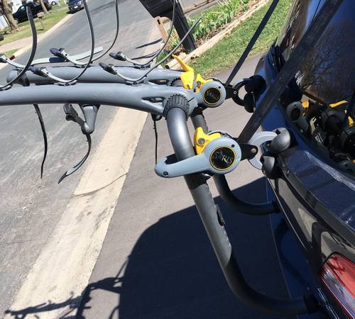 Strap-free, trunk-mounted rack holds up to three bikes of any size