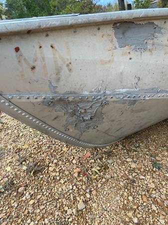 14ft boat will nice seat and oars Has a little patch job in the front doesn’t leak