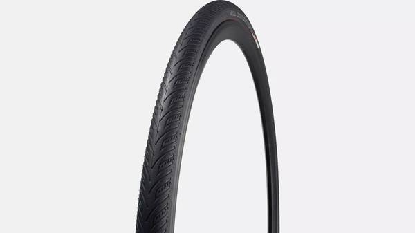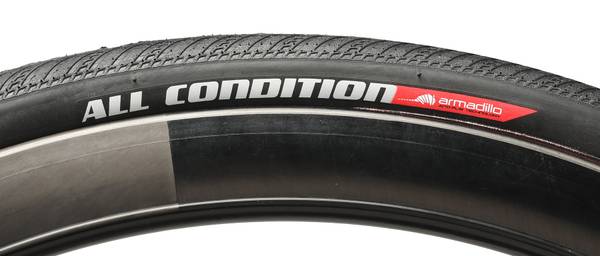 The Specialized All Condition 700 x 28 road tires does absolutely everything well, making it one of the best all-around tires available anywhere. Proprietary Armadillo flat protection assures riders can cover as much terrain as they want and never have to worry about punctures. The lightweight dual-compound tread blends all-condition traction even in wet conditions with exceptional wear. Top it all off with the motorcycle-inspired dual radius design (DRT) that minimizes contact in straight lines, while maximizing contact surface and traction in corners.