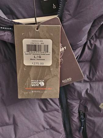 Mountain Hardwear Super/DS StretchDown Hooded Jacket, new with tags. 700 fill power down. Large size. Dark Zinc color. Asking $225 or make a reasonable offer.
