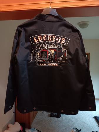 Lucky 13 hot rod coat, size xl. Got as gift and is too big. Wore jacket one time. Coat is literally brand new, $100.