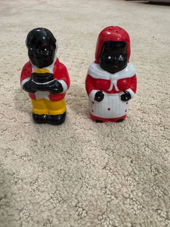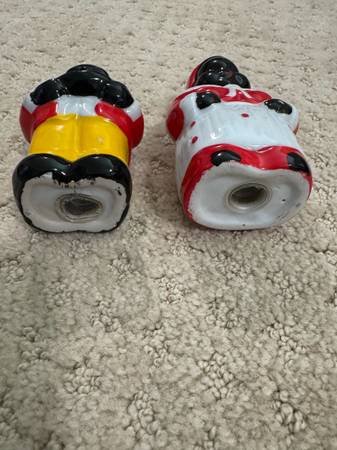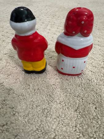 Nice set of salt and pepper shakers. No markings. Appear to be ceramic. Cannot tell if they have ever been used. About 4" tall. Very clean.