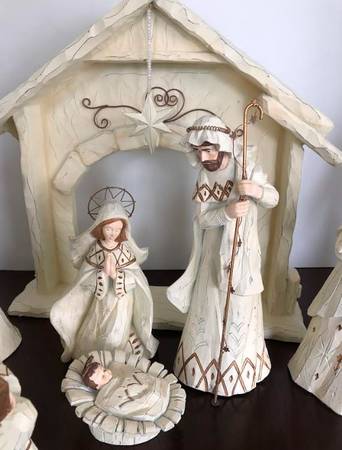 American Greetings Nativity Creche Set Resin Carved Wood Look Rustic 9 Pieces.