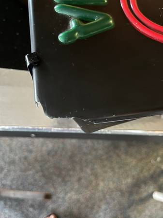 THE NEON HAS BEAUTIFUL COLORS, RED, WHITE, AND GREEN. 23" WIDE, 19" HIGH X 6" DEEP. DAMAGE TO ONE CORNER AND 2 CLIPS .A GREAT ADDITION TO YOUR REC ROOM OR YOUR NEON COLLECTION..