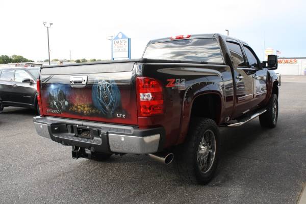 For sale we have a 2013 Chevy Silverado LTZ crew cab Duramax. This is a like brand new 1 owner with only 36,000 miles! American Luxury Coach custom Z82 conversion out of South Carolina. Features two-tone metallic paint scheme, leather interior, 20" chrome wheels on all terrain tires, leather interior, dual power/heated seats, touch screen radio w/ mp3/usb/aux, bluetooth, navigation, Bose sound back-up camera w/ sensors, tow pkg w/ built-in brake box, DVD entertainment, chrome step bars, cowl hood, chrome push bumper, hard tonneau cover, keyless entry w/ remote start, power windows and locks, cruise, tilt, air and so much more! Priced at just $42,900 For more info visit our website at www.dansofbiglake.com or give us a call at 763-262-6500 Thanks!