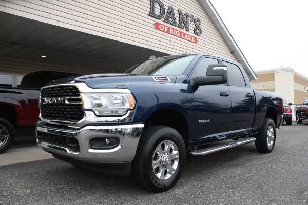 For sale we have a 2024 Ram 250 Big Horn crew cab 4X4. This is a like new 1 owner with only 12,000 miles! Great features such as 6.4L Hemi engine, 4WD, power seat, touch screen radio w/ mp3/usb/aux, bluetooth, Premium sound w/ built-in subwoofer, tow pkg w/ brake box, chrome step bars, spray-in bedliner, back-up camera, keyless entry, power windows and locks, cruise, tilt, air and more! Priced at just $42,900 For more info visit our website at www.dansofbiglake.com or give us a call at 763-262-6500 Thanks!