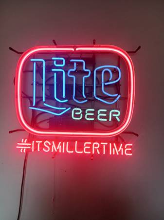 A red white and blue neon. Fully functional Miller lite neon has a #its miller time... Contact me at (text is most convenient)