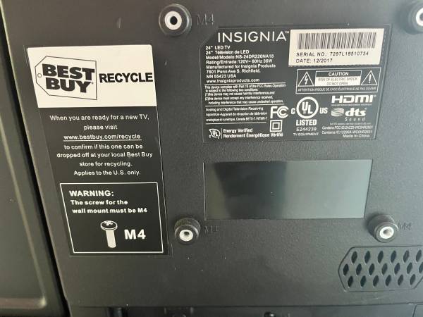 TV screen. 24 inch. Insignia. One HDMI port. Cable ports. Cash only.