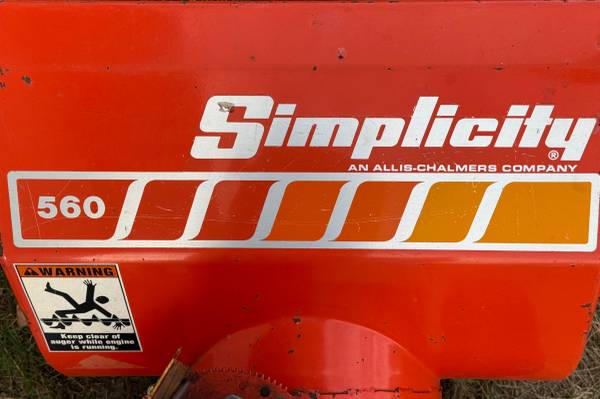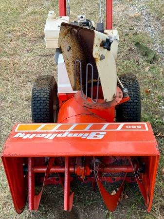 For sale is a fully working Simplicity 560 5 HP 24-inch Two-Stage Snowblower with electric starter. Works great, just upgrading to an all-electric snowblower. Starts right up, especially with the built-in electric starter.