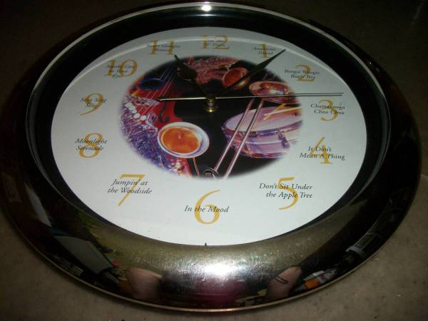 About 13" diameter, gold tone frame (hard to tell in the photo). Used, works in great condition. It is in a beat up box.