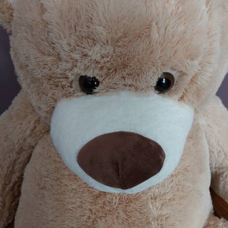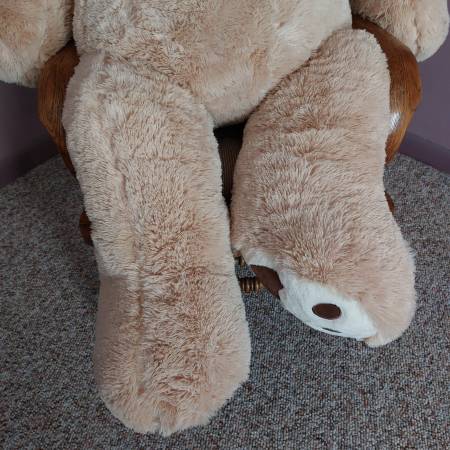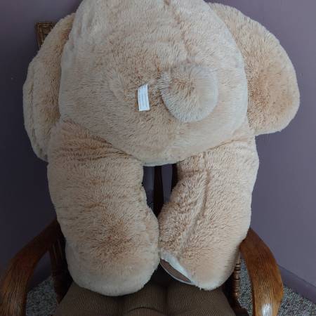 Pre-Owned Goffa Bear. Plush Bear 4.5' or 54" H. Head hangs down a bit when seated. Clean and no odor. Was used as a library display on an upper shelf. Has been stored at my smoke-free home since. Available for inspection. Local pick up only. Cash Pick up in Brownton, MN. Located about 45 minutes west of Eden Prairie, MN just off of Hwy 212.