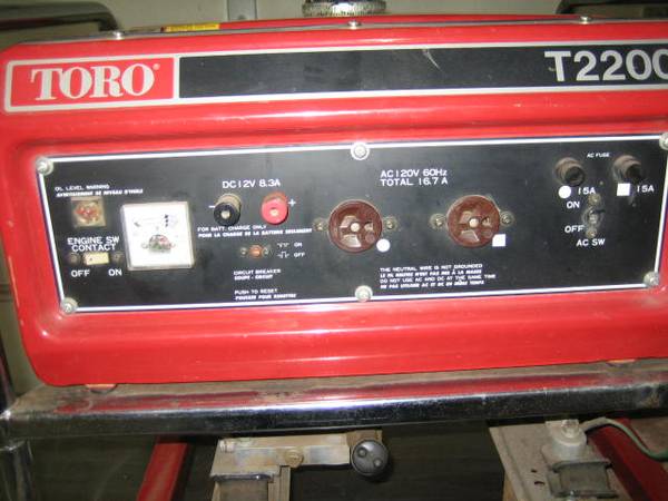 Toro Generator 2200 Watt Good condition Starts easy Quiet Tow wheel kit Cash Please No text I do not reply Please call the contact phone number Thanks