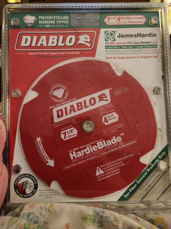Sells a new Diablo 7 1/4" Hardie blade for cutting fiber cement board. Blade is new in the packaging. Asking g 30 bucks.