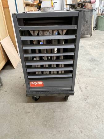 Dayton 50,000 BTU hanging gas heater. Currently jetted for LP but comes complete with natural gas jets and valve. Was used in a 22’ x 44’ x 12’ high ceiling space. This is an ideal size unit for a...