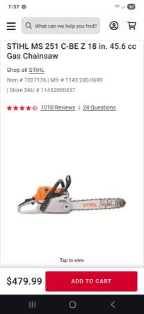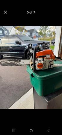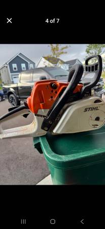 Ms251c with ez start pull start and no tools needed to adjust the chain,Fresh sharpend chain with 1 extra chain in great shape and runs great.I have to measure but it's either a 16 or 18in bar...