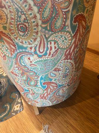 Bought this new one it has sat in an unused room. No pets no kids no rips no tears nor stains no odors excellent condition and it has a reversible cushion.