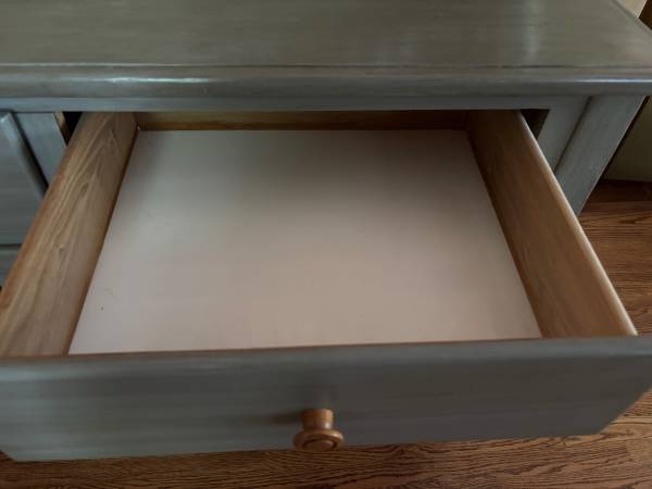 Oak buffet. Light sage green with brownish glaze. 52" L x 20" w x 36" H. $200. POMS/FCFS
