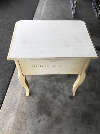 A couple of scuffs... but in very good used condition. Single drawer nightstand. Ready to repaint, or use it as-is! It's 17" deep, 20" wide, and 24 1/2" tall. $15 cash... Reply email to Jay.