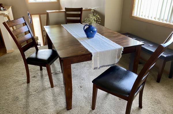 Beautiful Kona Wood dining room table 60x42 expandable to 78 with built-in leaf.