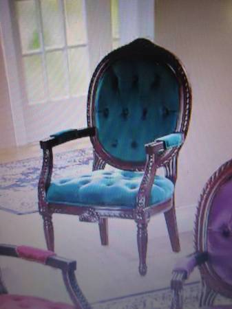 Hand-Carved "Venetian" Accent Chair. -----BRAND NEW, open box Retail $229.95 ----- EZ Assembly required. (YOU WILL NEED TO FIND A COUPLE BOLTS FOR THE GREEN ONE ----- I ALSO HAVE THE RED ONE, WITH NO ARMS FOR $60 ---