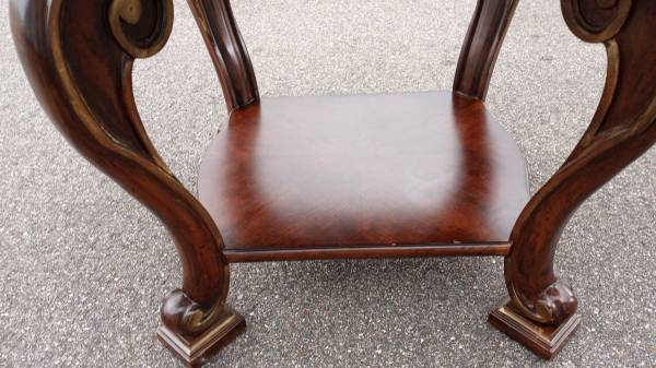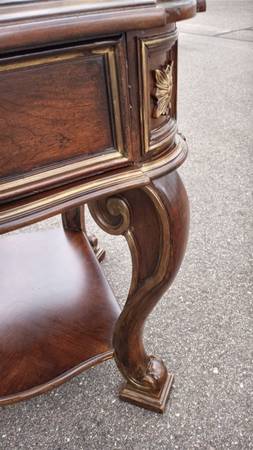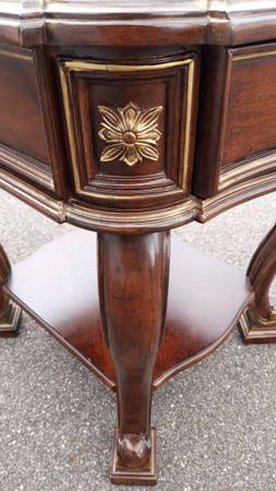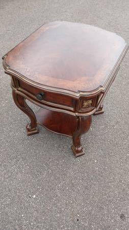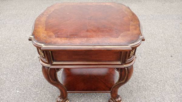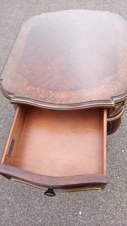 Beautiful table in very good condition. Overall. A few minor imperfections. I believe it is mostly Walnut. 28h. 28w, 29d