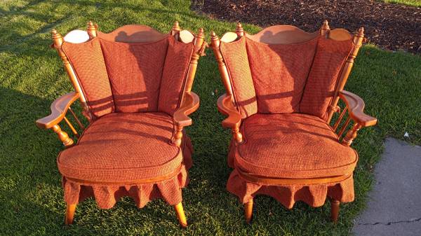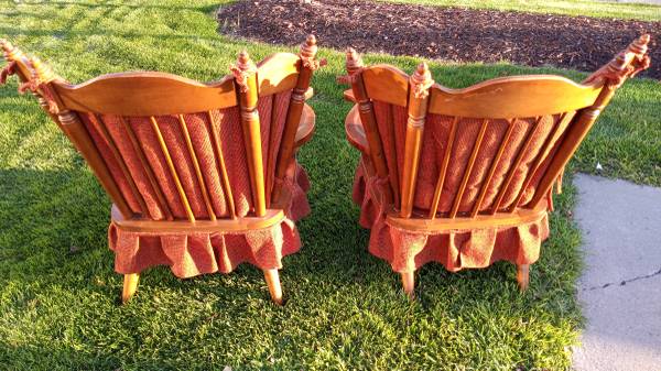 Tell City chairs. Excellent condition mid-century Maple. One is a rocking chair and one is not. They are both essentially visibly identical aside from that. Matching set. Email with interest