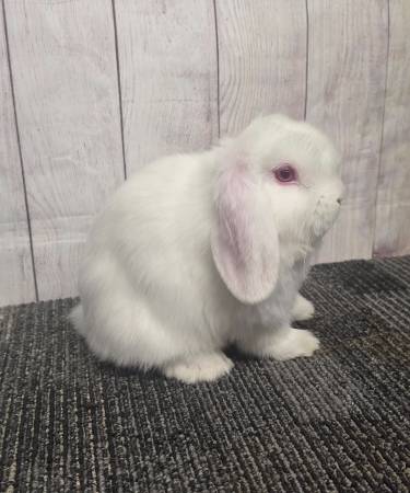 This boy is gorgeous and as sweet as can be! He has lived indoors his whole life and is not used to the heat or cold. He is used to being held and handled all the time and being around kids, cats, and dogs. He would make a great pet or excellent show/breeding rabbit. Will stay nice and small (3-4lb) when full grown.