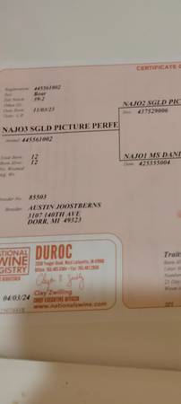 Purebred registered Breeding Boar born 11/23 Joosberns bred Duroc boar