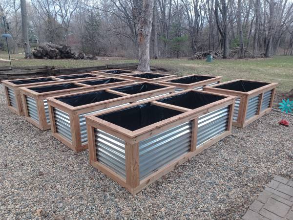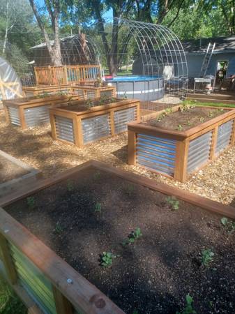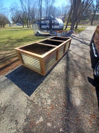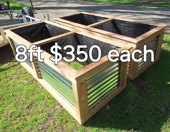 Most common sizes are 6x3 ($300) and 8x3 ($350) but im happy to give you a quote on any size you need. All are 28 inches in height. Built with cedartone pressure treated wood rated for ground contact, this will far outlast regular cedar. Panels are galvanized steel that won't rust or wear out. These planters will look the same for years to come with no maintenance. All exterior grade screws are lined with plastic as recommended by the wood manufacturer.