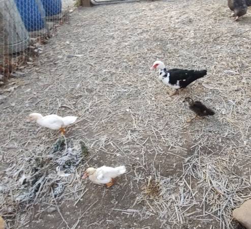 I have 4 Muscovy ducklings (2 white 2 brown) for sale (2 hens $ 2 drakes) that were hatched 8/25/25 (mama duck is not for sale). $10 each or all four for $30. Ducklings, ducks, farm raised,