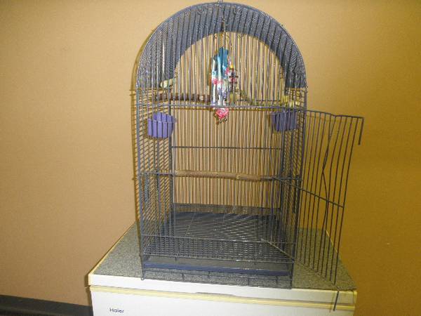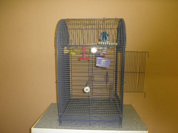 Complete with toys and stand Worth over $250.00 Get everything for only $65. Price this at PetSmart then come by this! 20 x 20 x 30 inches high. For Conures, Cockatiels Love birds