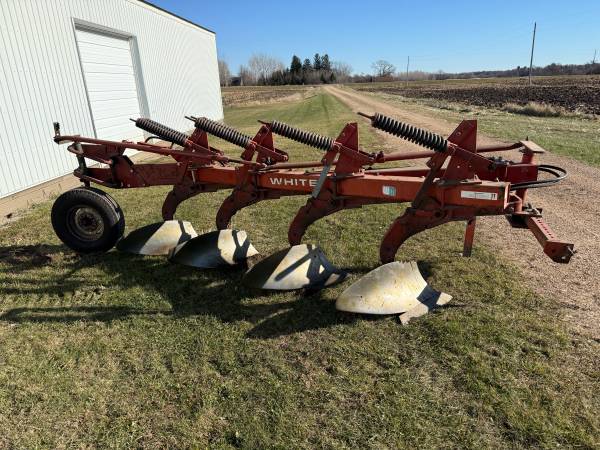 For sale: White 4 bottom plow w/ 3 point hookup. Model: 505 Field ready 800 or best offer.