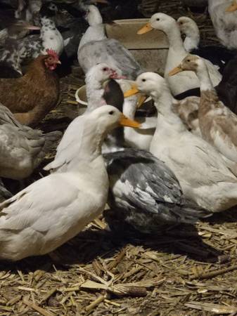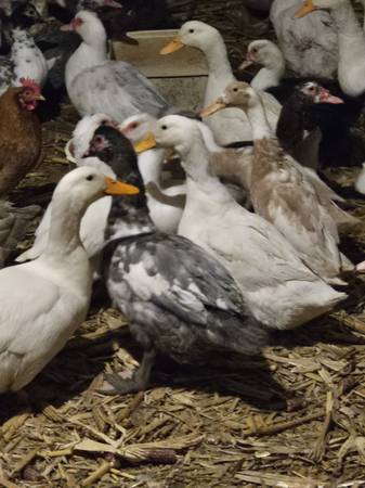 Pekin ducks. Spring hatch. Full grown. 7 females. 2 males. $15 each.