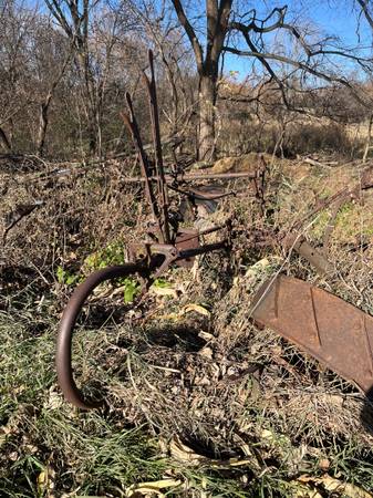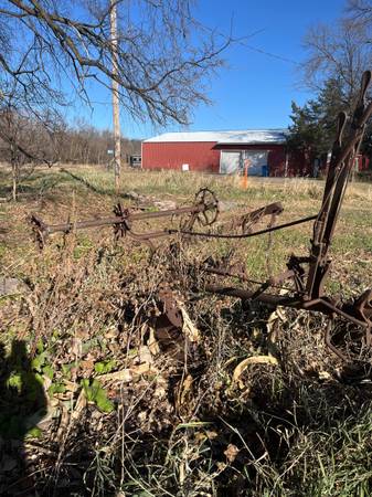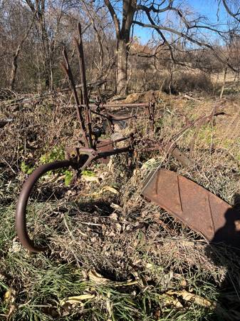 Side delivery hay mower. Very interesting! Tough shape. Rare find. East access, close to road. Near Rockford, west of Plymouth 17 miles. South of Monticello 17 miles.