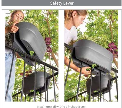 Crescent Garden Ella Rail Planter 22in x 11in - Dark Slate. The Crescent Garden Ella Rail Planter - 22in x 11in - Dark Slate - is perfect for displaying colorful annuals. It features a safety lever for secure rail mounting.
