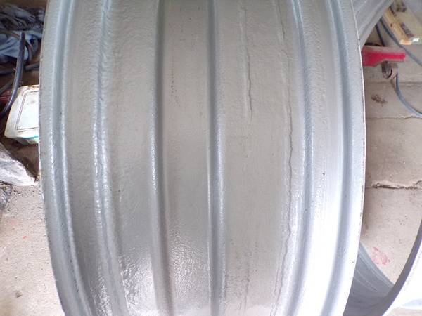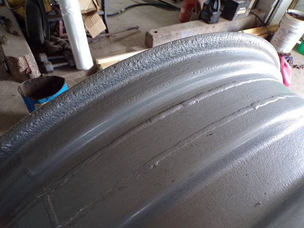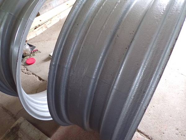 Rims measure 13.75" inside bead to bead. At some point the rims width had been extended as you can see in the pictures. There was also fluid in them at point point too as there is pitting on in inner side of the rim. I did wire wheel the rims prior to painting and did repair around one rim the valve stem area (about the size of a .50 coin). They are usable rims $125 each